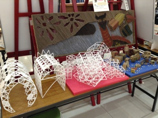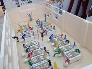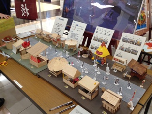 左:教室模型 右:段ボールアート・スチレンボードによる構造模型