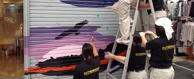 今年のインテリア科3年課題研究グラフィックデザイン班はシャッターアートに取り組んでいます。
