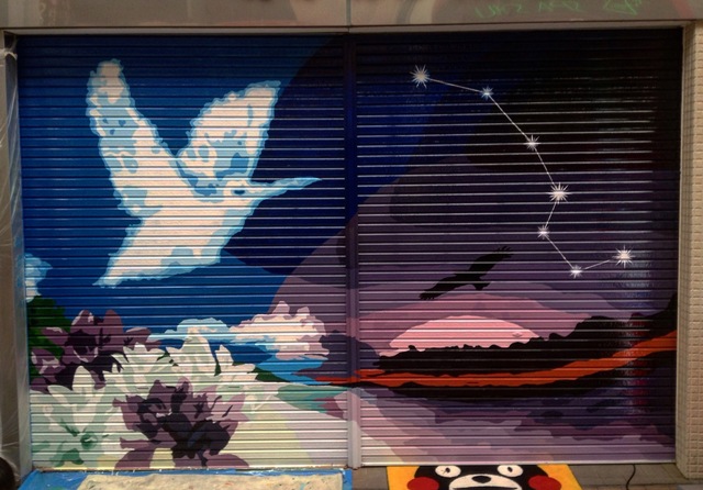 八代本町アーケードで取り組んだシャッターアートは、目標としていた7月中に完成することができました。