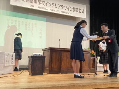 全国高等学校インテリア科デザイン展(デザイン甲子園)にてインテリア科2年山形さんの作品が入賞し、表彰が行われました。