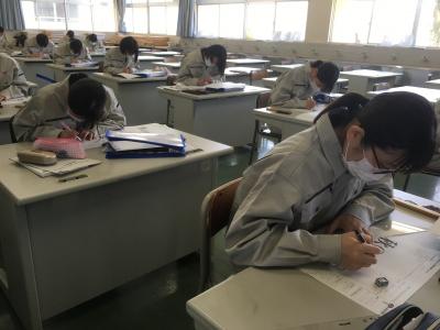 年度初めは製図板を作る木工班と、レタリング検定の練習に取り組む班に分れます。