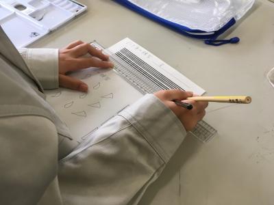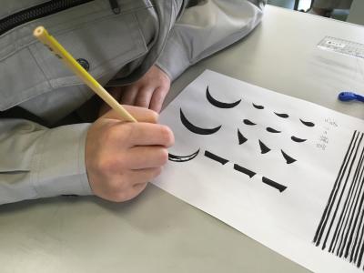 レタリング検定に向けて筆による引き線と塗りの練習を行いました。