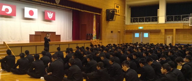進路指導部や生徒指導部より今年の状況や、これから卒業式に向けて、社会人になってからに向けての話がありました。