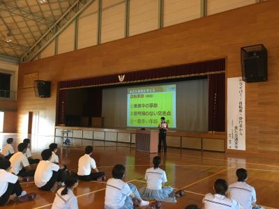 講師の一般社団法人日本自動車連盟の前川様より「ドライバー・自転車・歩行者から見た交通安全」という演題お話しいただいたことで生徒たちの交通安全意識と交通マナーの向上につながったと思います。