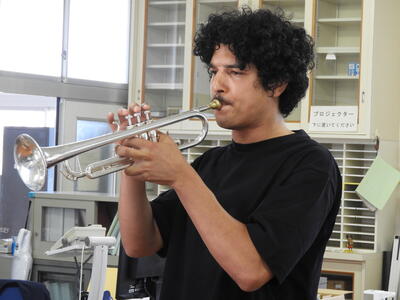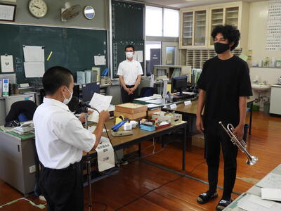 音楽家のキーガン先生からプレゼント。生徒代表お礼の言葉。