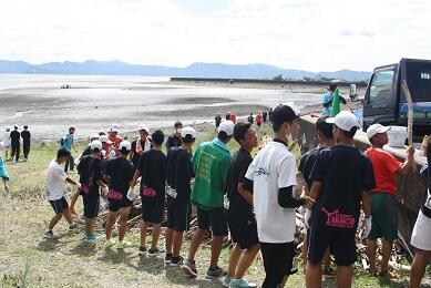 令和3年7月24日(土)八代市鼠蔵町海岸で、次世代のためにがんばろ会主催の第17回八代海 河川・浜辺の大そうじ大会に、本校生徒の230名程度の生徒が参加しました。