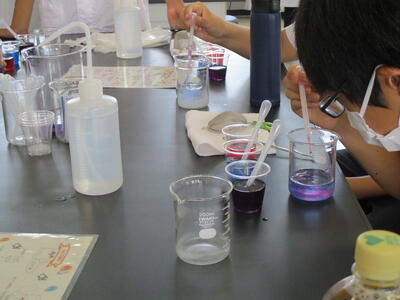 アロマビーズ (アルギン酸ナトリウム溶液を利用した香りビーズ) 中和滴定 (アルカリ性溶液に酸性溶液を加える) 3年生からの説明