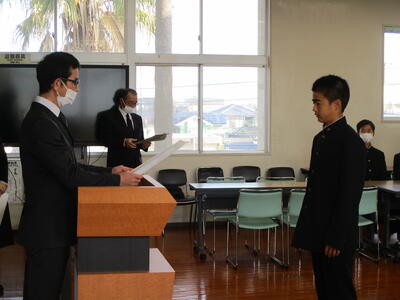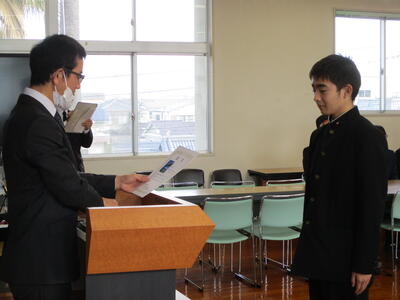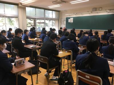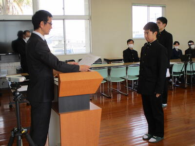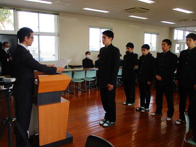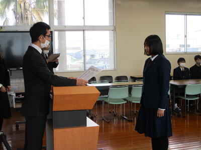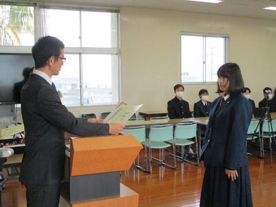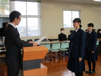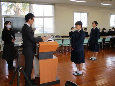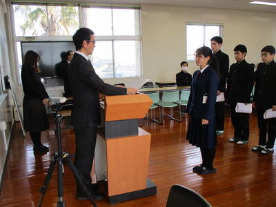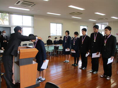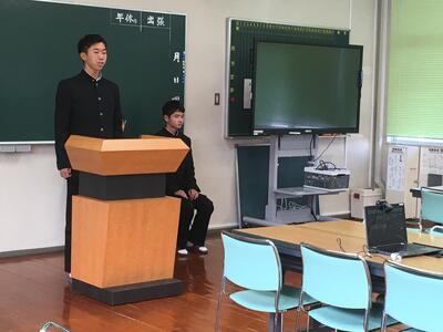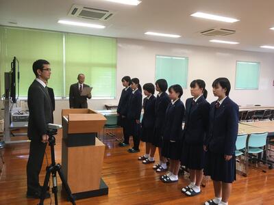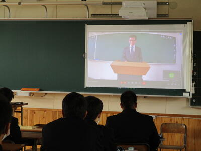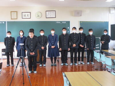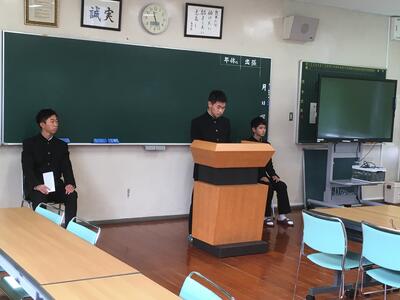 テスト終了後、表彰式と推戴式、生徒会立ち会い演説がオンラインで行われました。