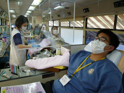 12月15日(水)本校に献血バスが来て、希望生徒・職員約50人が献血を行いました。