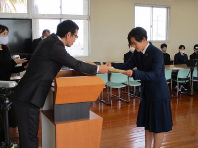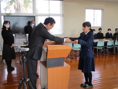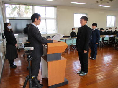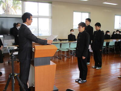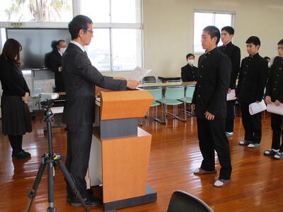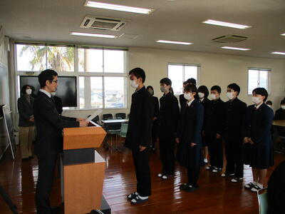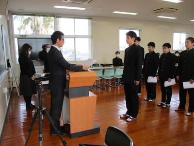 本日は表彰式、生徒会認証式、終業式を全てオンラインで開催いたしました。