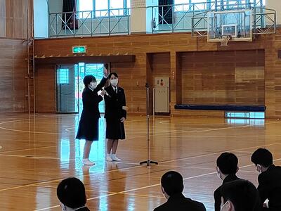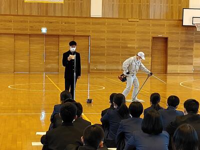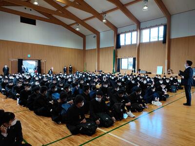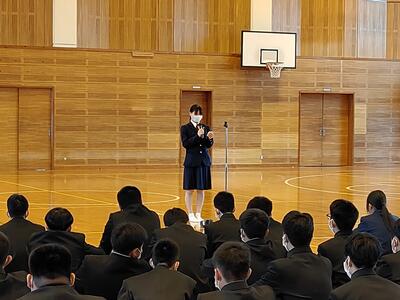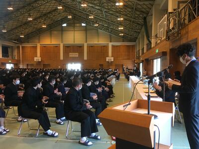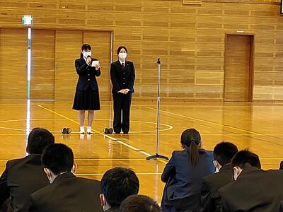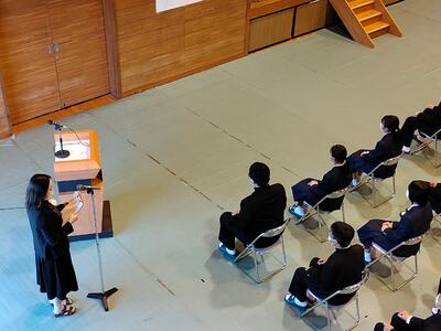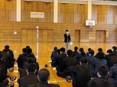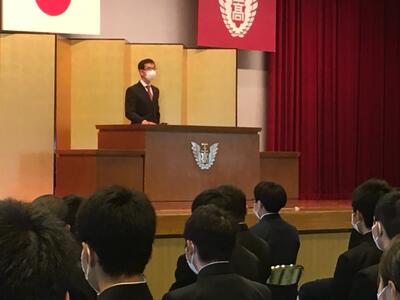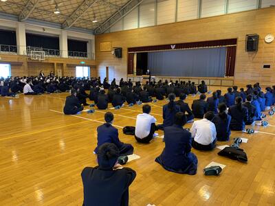 新入生がスムーズに高校世瑛勝つに適応し、充実した毎日を送るために関係各部署からの講話がありました。