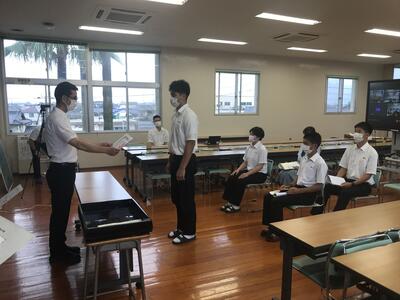 本日は8月6日に愛媛県で行われる全国選抜高校生溶接技術競技会の推戴式と第1学期表彰式、終業式が行われました。