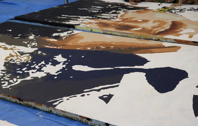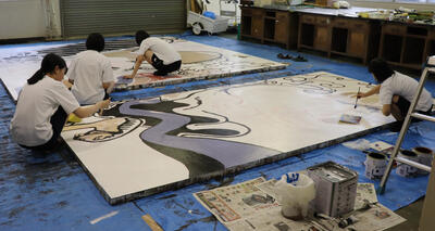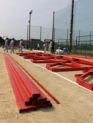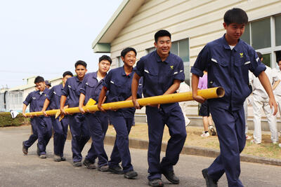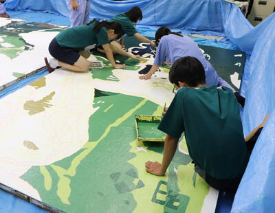 9月20日に体育祭で使用する団席の運び出しを行いました。とても重いのですが、3年生が何往復もしながら、声を掛け合って運びました。また、各団の団画も着々と進められています。