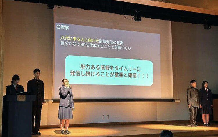 令和5年11月8日に熊本大学で令和5年度(2023年度)工業高等学校生徒研究発表会が開催され、本校からは情報技術科3年生5人が課題研究で取り組んでいる「八代市本町アーケード街の活性化」について発表し、奨励賞をいただきました。