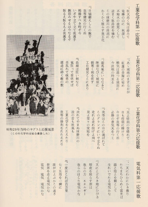 昭和47年頃の八工応援歌、八工健児の歌、各科応援歌