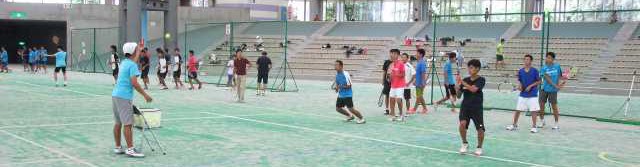 夏季選手権大会2年女子ダブルスと1年男子シングルスの準々決勝に残った生徒達の試合の後、パークドームで行われたヨネックス講習会に1年生で参加してきました。集まった学校の中でも返事や練習中の声が目立っており雰囲気が良いとおほめの言葉をいただき、とてもうれしかったです。
