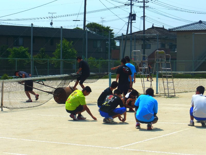 約20日ぶりの部活。まずは再びお世話になるテニスコートの整備からスタートしました。