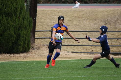 試合は、序盤から相手の低く鋭いタックルに苦しみました。なかなか得点が出来ない状況が続きましたが、ようやくモールからサイドを突きトライ。5-0で折り返すと、後半2トライを重ね15-0でノーサイドとなりました。