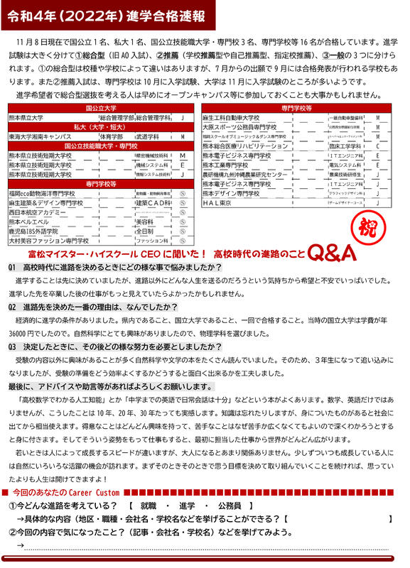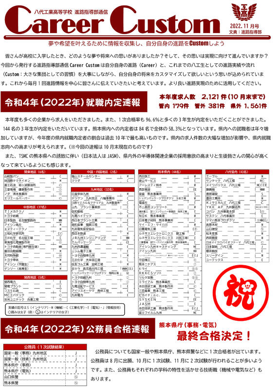 進路指導部通信Career Custom①
