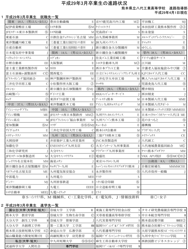 令和4年卒業生の進路先一覧です。
