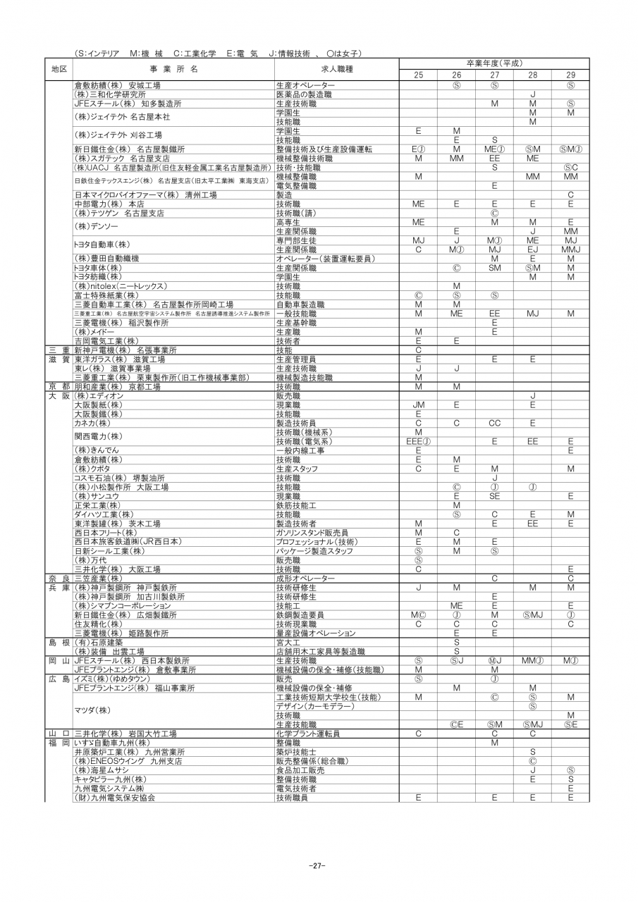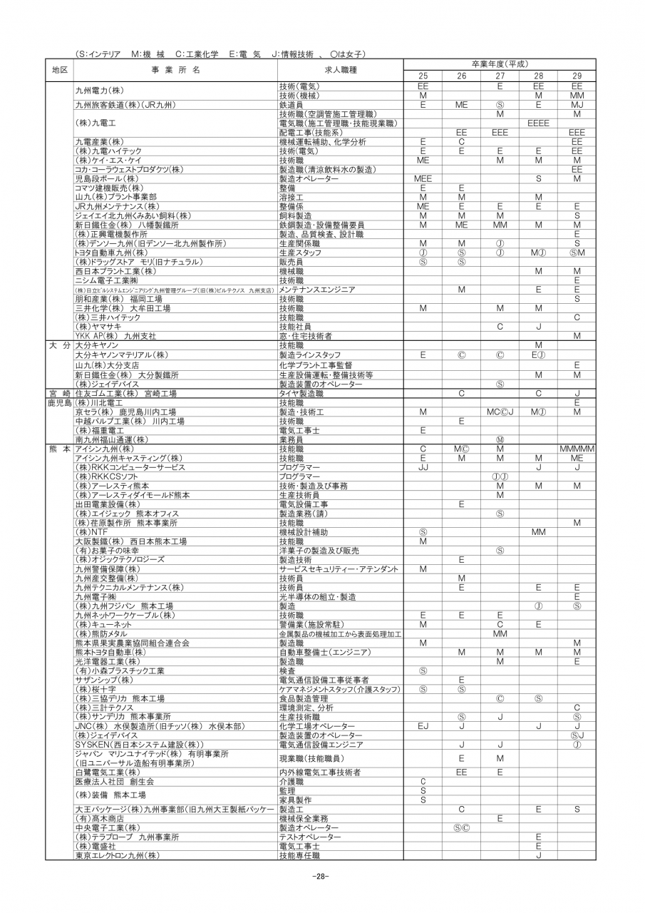 令和4年卒業生の進路先一覧です。
