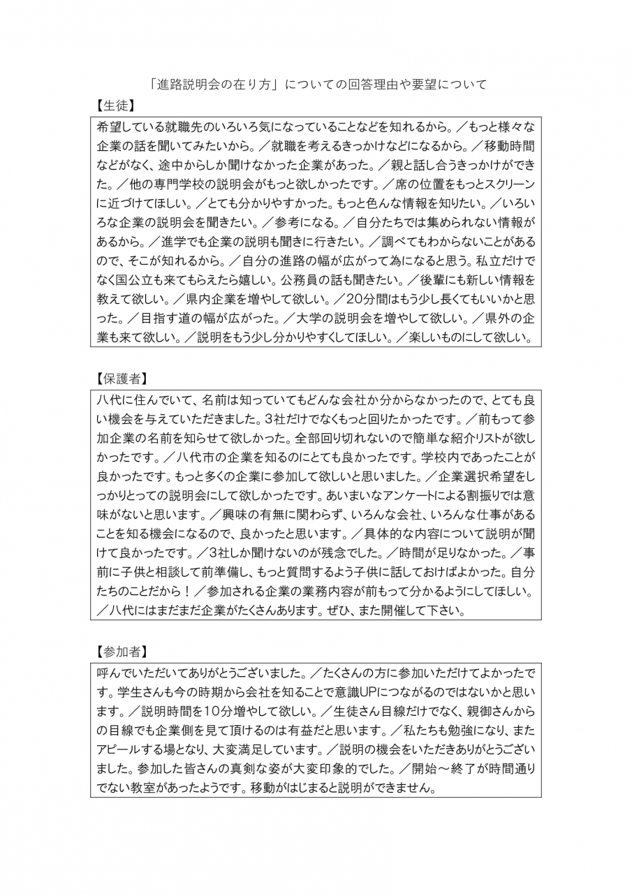 2学年保護者会内で就職・公務員・進学に分かれ、進路説明会を実施しました。