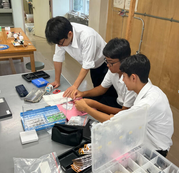 令和6年7月5日(金)八代第六中学校技術室にて、3年生41人を対象にものづくり体験教室“やってみよう!!ものづくり”を実施しました。