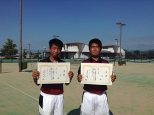平成29年度熊本県高等学校夏季テニス選手権大会1年男子ダブルスにおいて、水田・堤ペアが初心者ながら3位入賞を果たしました。