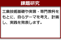 工業化学科のスペースでは、主に課題研究について紹介しています。