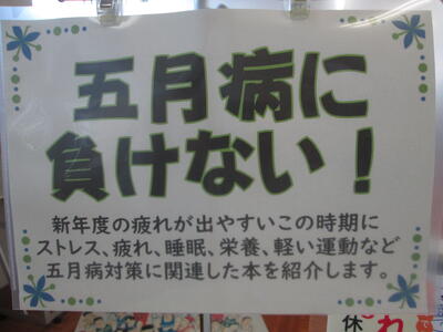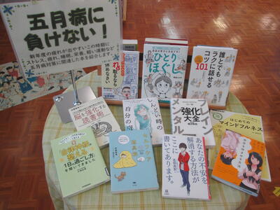 今月は「五月病に負けない!」をテーマに展示をしています。