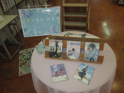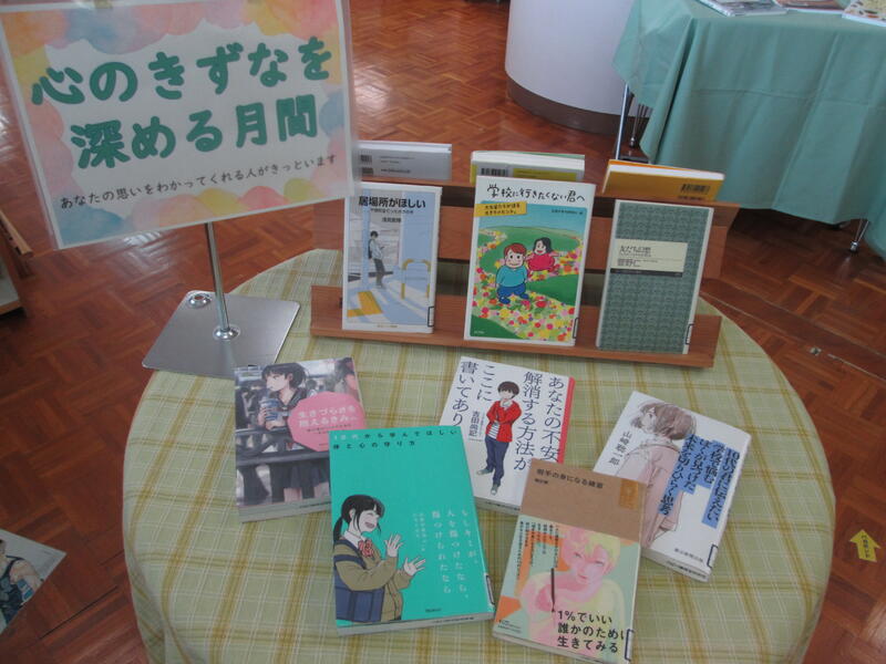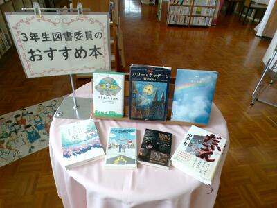 9月は、3年生の図書委員おすすめの本というテーマで7冊の本を展示しています。
