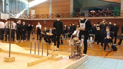 11月7日(日)、熊本工業高校で標記の大会が実施されました。競技内容は、埼玉県で開催される(ビデオ審査)全国大会に準じたもので、一台のロボットがエリア毎に、オペレータの操縦と自動運転で課題をクリアして得点を競うものです。本校では機械製作部と機械科3年生の課題研究で大会に向けてロボット製作に取り組んできました。