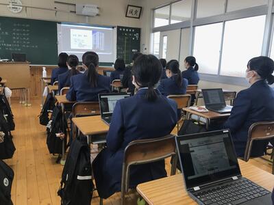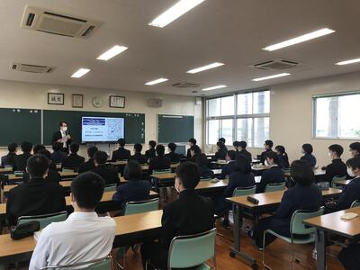 テーマは「AI」についての講話をしていただきました。pythonというプログラミング言語を用いて、実際にプログラムを作成していました。生徒は初めて扱うpythonに難しい表情を浮かべていましたが、作成したプログラムが動いた時には成功した充実感の表情を見せていました。