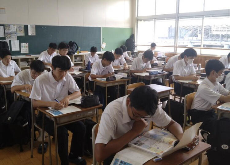 最後は電気科B組です。10月29日に実施される第二種電気工事士筆記試験に向けて、時間を計測しながら真剣に取り組んでいます。分厚い対策本がボロボロになるまで頑張ってくださいね!