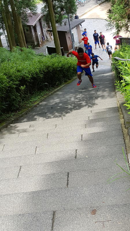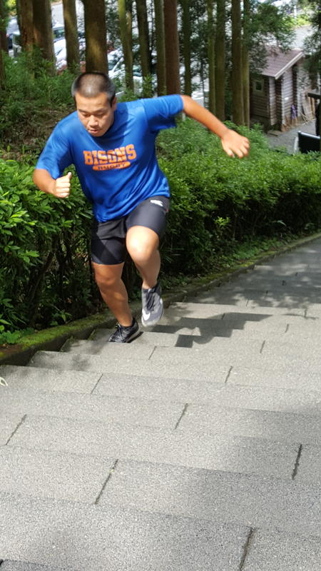 普段は、学校体育館の階段を使ってトレーニングをしていましたが、さらに強化しようと