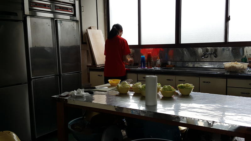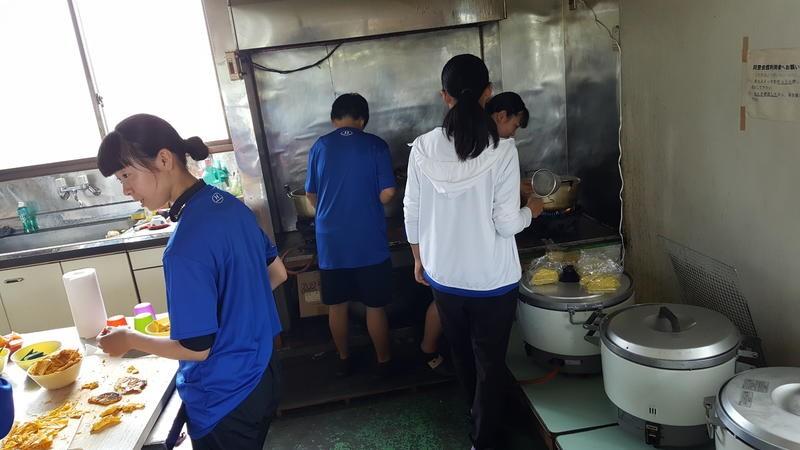 練習が終わった部員もおなかぺこぺこで続々お手伝い毎年、保護者さんが来て下さって食事を作って貰うのですが、