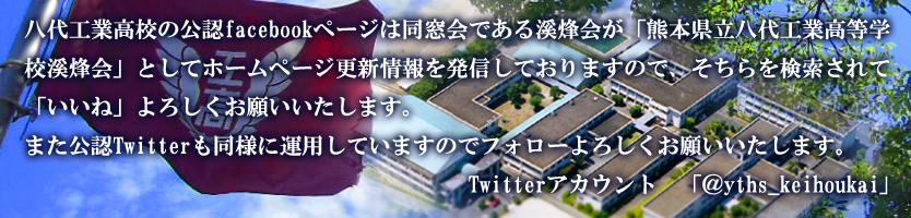熊本県立八代工業高等学校同窓会(溪烽会)facebookページ https://www.facebook.com/ythskeihou