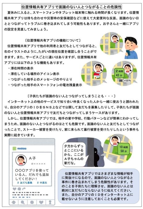 PDF資料③ → 情報モラル啓発資料③(保護者啓発用) ~位置情報共有アプリについて~.pdf