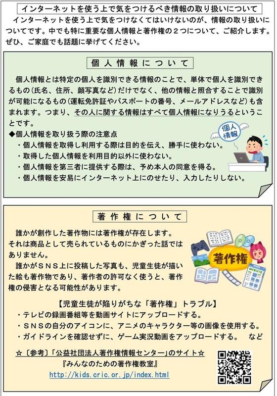PDF資料⑥ → 情報モラル啓発資料⑥(家庭啓発用)~インターネットを使う上で気をつけるべき情報の取り扱いについて~.pdf