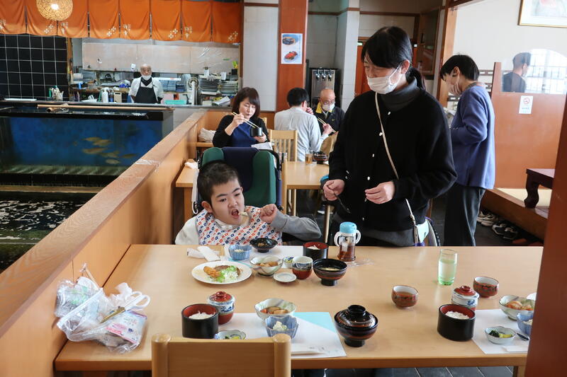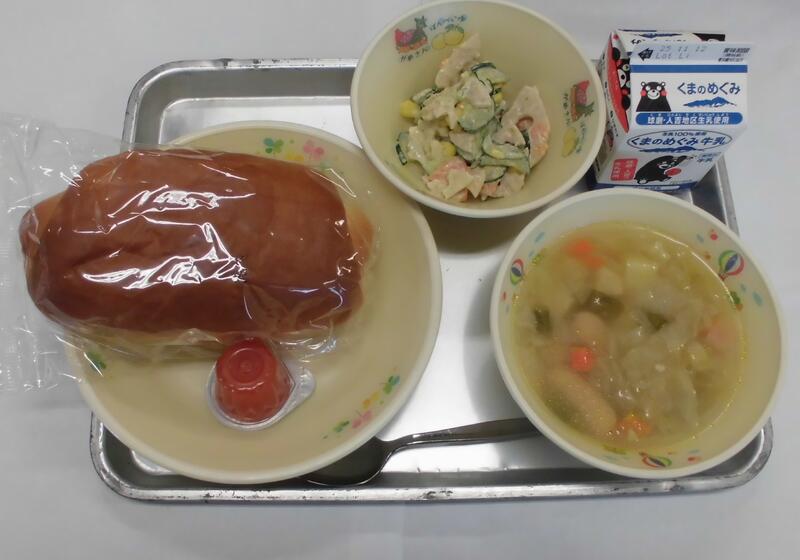生徒は好きな料理を皿に盛り付けて食べました。