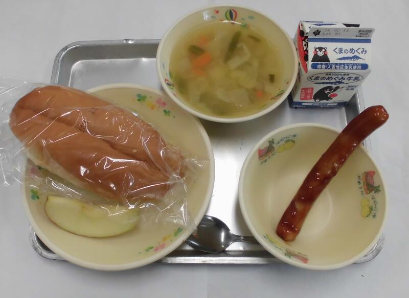 今日の献立は、セルフドック、ポトフスープ、りんご、牛乳です。
