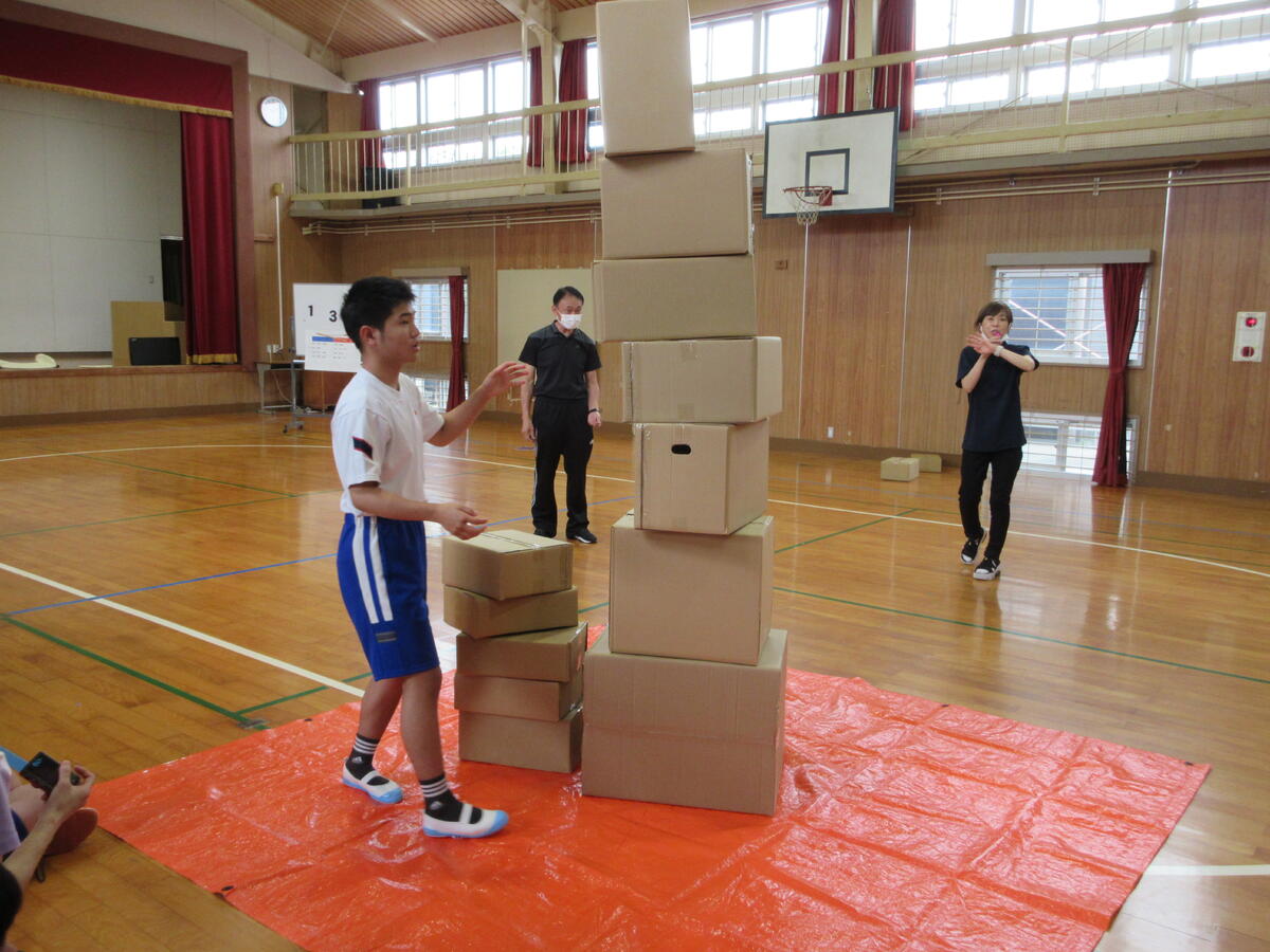 地震のときには姿勢を低くして頭を守ること(1次避難)、地震で学校の裏山が崩れた場合の避難(2次避難)、その後で津波が来た場合の避難(3次避難)について学習しました。