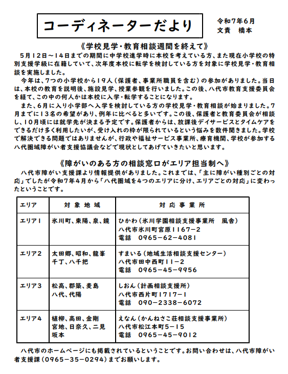 令和7年度 コーディネーター便り6月号 6/19(木)