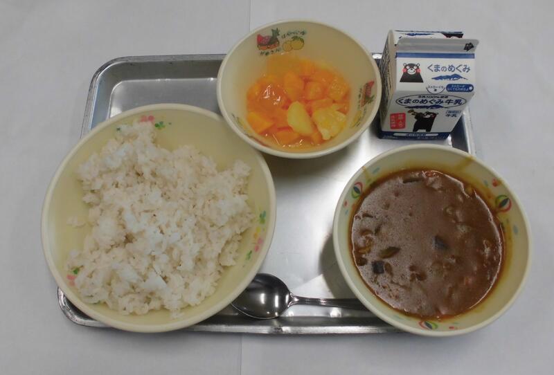今日の献立は、夏野菜カレーライス、フルーツジュレ、牛乳です。