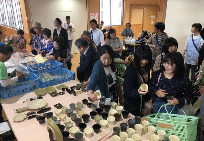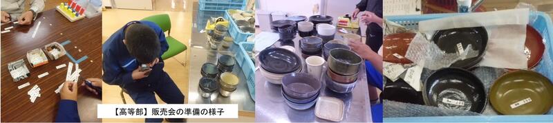 各学部の活動として、小学部はあそびコーナー、中学部・高等部一般学級は農作物や革工芸、陶芸、縫工製品などの販売、中学部・高等部重複学級は「であいカフェ」を行いました。