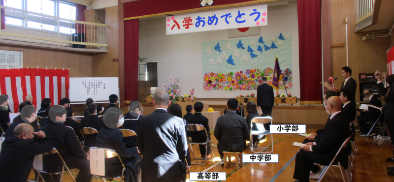 4月9日に令和2年度の入学式を行いました。新型コロナウイルス対策として小学部、中学部、高等部の順で時間差をつけ、それぞれに執り行う形を取りました。各学部20分程度で行ったり、受付や下校も時間差をつけて行ったりしました。