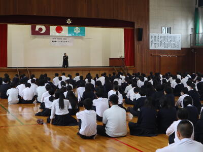 圧倒的な世界観で歌われる「もののけ姫」を始め、「さっちゃん」などの童謡から「花は咲く」といった合唱曲まで、たくさんの素晴らしい歌を披露してくださいました。アンコールの「ヨイトマケの唄」は初めて聞いた生徒がほとんどでしたが、力強い声に乗せた母との愛の物語に、皆感動していました。
