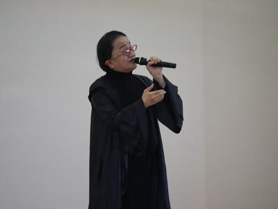 令和7年10月24日(金)、歌手の米良美一さんをお呼びして、芸術鑑賞会が開催されました。米良さんは映画『もののけ姫』の主題歌で一躍脚光を浴び、以後、カウンター・テナー歌手として世界的に活躍をされています。