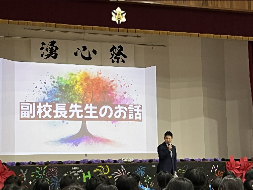 令和7年11月14日(金)全日制文化祭、『湧心祭』が行われました。今回のテーマは『彩 いろどり』(3年宮脇さん)、サブテーマ「~みんなで描く青春キャンパス~」(1年守永さん)、ポスターは3年李さん、水原さんの作品でした。テーマに合わせて、会場がより一層華やかにカラフルに装飾され、生徒会の皆さんが一生懸命、準備活動に取り組んでいました。文化祭当日は、フライバザー(飲食)、キッチンカー、各クラスの企画など盛りだくさんの内容でとても賑わいを見せていました。発表では、湧心力A・B(総合的な探究活動)、保健委員会、2年4組、音楽選択、音楽部、有志発表、生徒会などそれぞれとても素晴らしい発表で、会場も盛り上がりを見せていました。