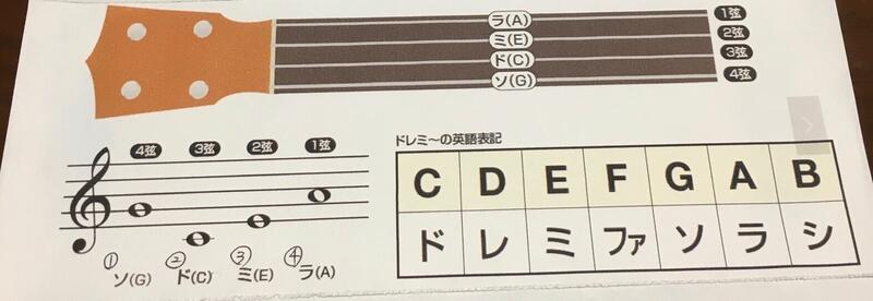 ★図を見て、1弦〜4弦それぞれの弦の音を覚えましょう。